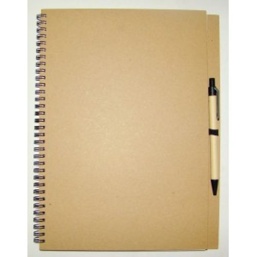 Эко-блокнот на спирали сбоку с ручкой А4 7534 и обложкой из биоматериала